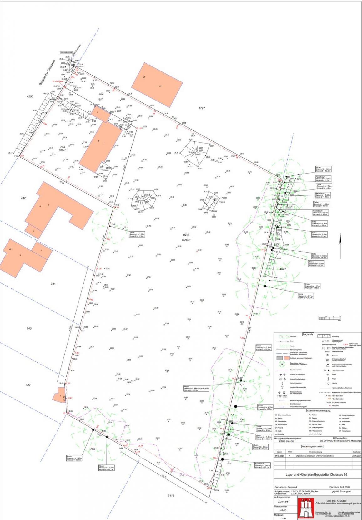 Unterstützung im Genehmigungsverfahren: Die Dokumentation des Baumbestands im Vermessungsplan ist ein wichtiger Bestandteil für die Einholung von Baugenehmigungen. Sie zeigt, dass das Projekt die gesetzlichen Anforderungen zum Schutz der Natur erfüllt, was für das Bergstedt Wohnquartier von besonderer Bedeutung ist.