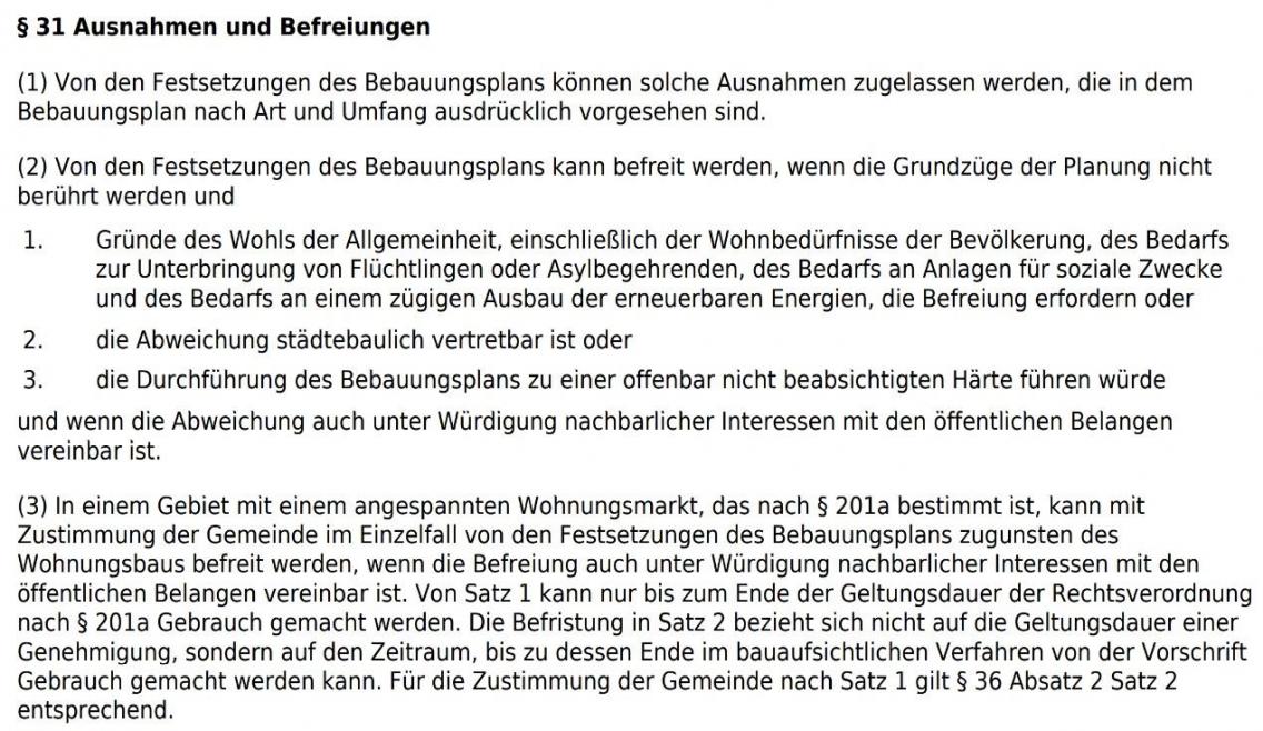 - Geeignetheit: Einzelfall nach § 31. Nr. 3 BauGB