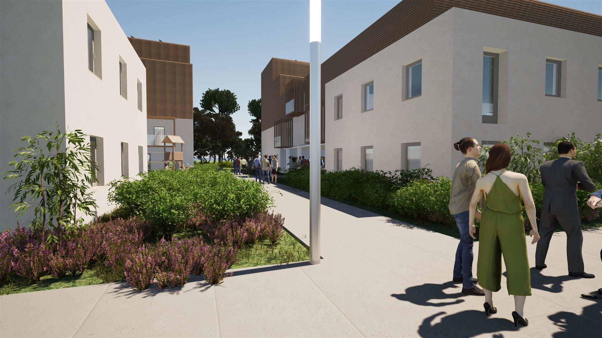 Damit die genannten Pflege- und Betreuungsleistungen nahtlos in den Alltag des WohnQuartiers integriert werden können, werden spezifische bauliche Anforderungen realisiert: